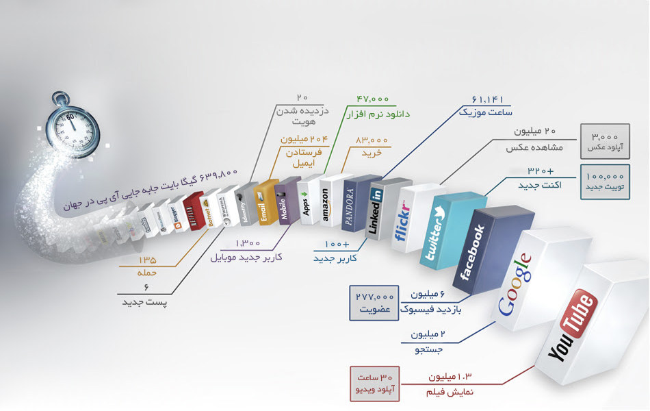 معیار خود را 60 ثانیه در نظر گرفته تا شما را با آمار خیرهکنندهی اتفاقات دنیای مجازی، شگفتزده نماید: